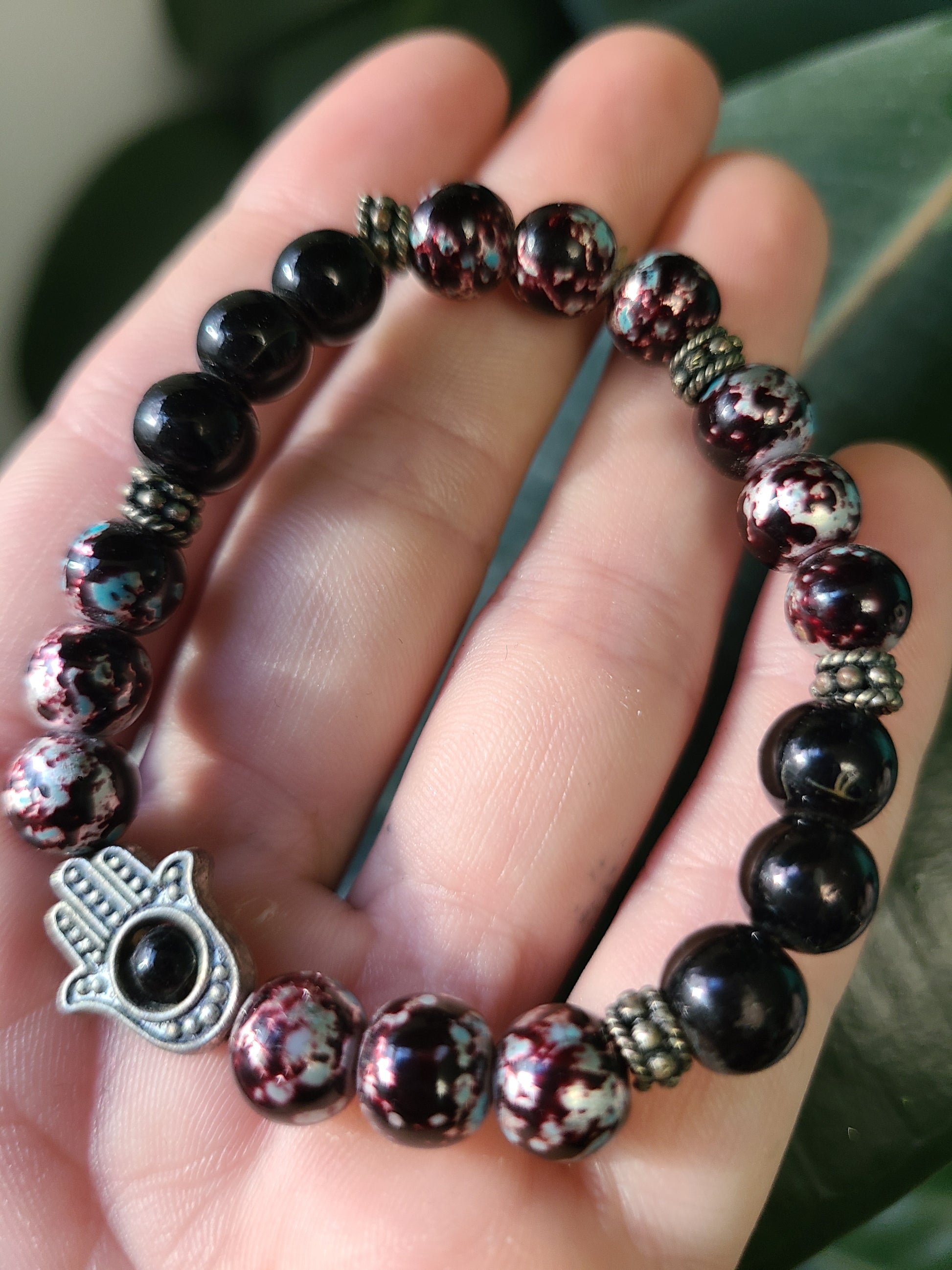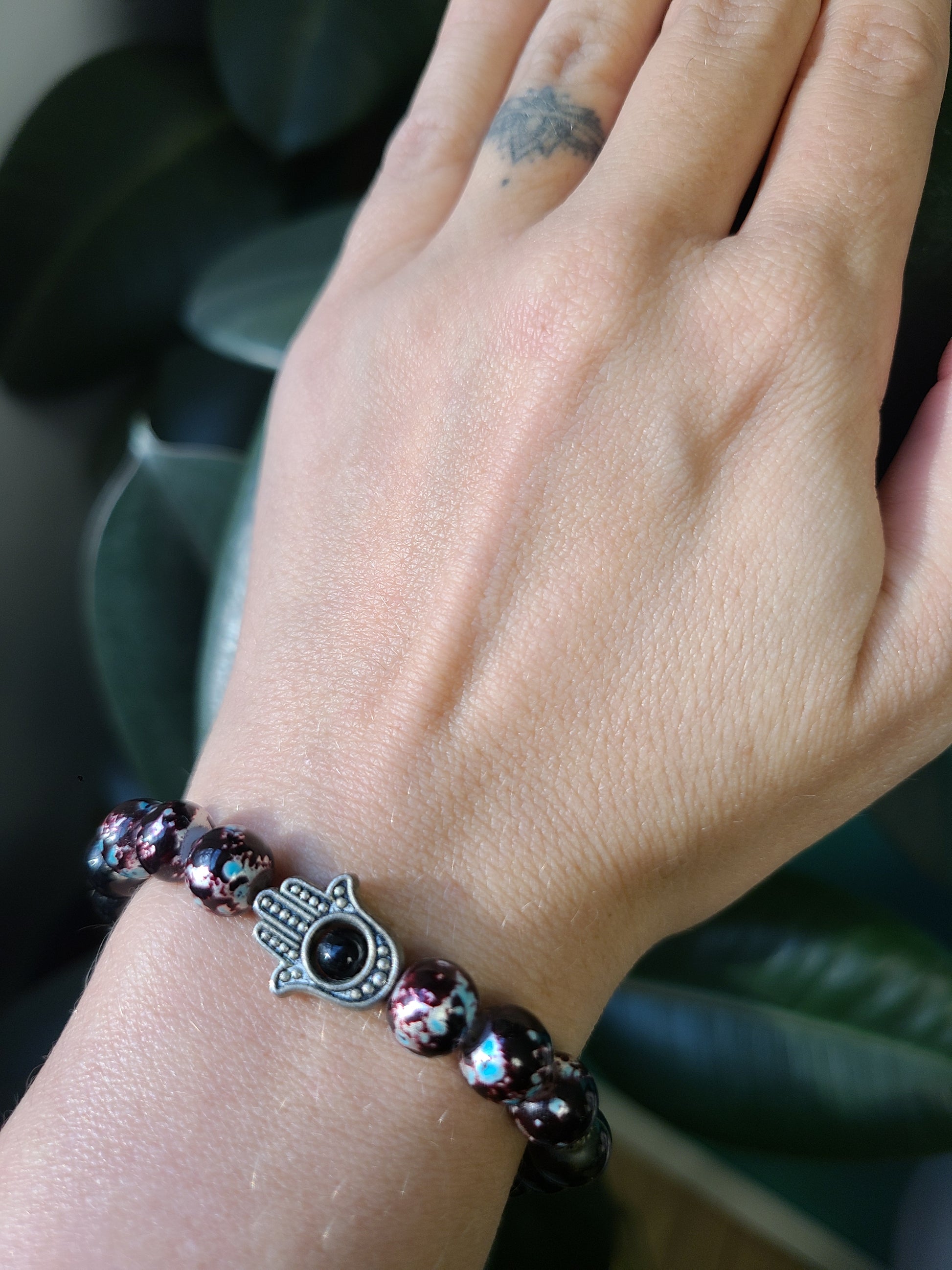 Beaded Yoga Bracelet strung on stretchy jewelry line for hassle free wear.